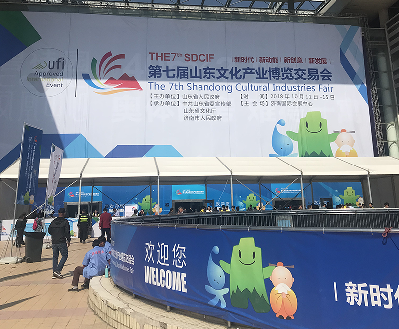 2018年10月11-15日第七屆山東文化產(chǎn)業(yè)博覽交易會(huì)在濟(jì)南國(guó)際會(huì)展中心盛大開(kāi)幕。展會(huì)以“新時(shí)代 新動(dòng)能 新創(chuàng)意 新發(fā)展”為主體,共設(shè)九大展區(qū),內(nèi)容豐富,各具特色。集中展示文化與旅游、科技、金融、海洋、現(xiàn)代農(nóng)業(yè)等產(chǎn)業(yè)融合發(fā)展,特別是文化與大數(shù)據(jù)、云計(jì)算、人工智能等高新技術(shù)的融合,推動(dòng)文化產(chǎn)業(yè)新興業(yè)態(tài)發(fā)展。