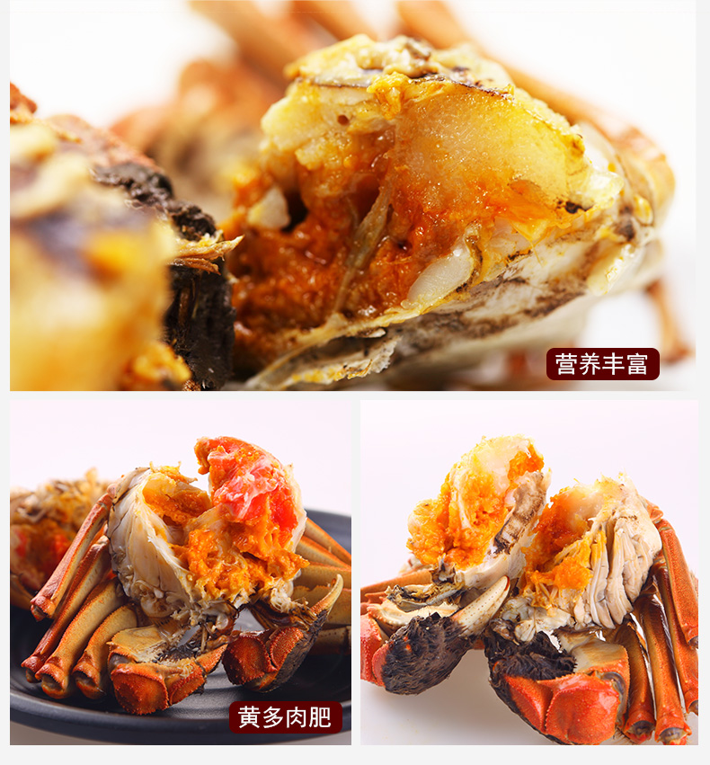 EM大閘蟹個大體肥,肉質(zhì)肥嫩鮮美,一般三只重500克,大者只重250克以上,最大者可達500克,青背白肚金爪黃毛,十肢矯健,蟹肉豐滿,營養(yǎng)豐富。